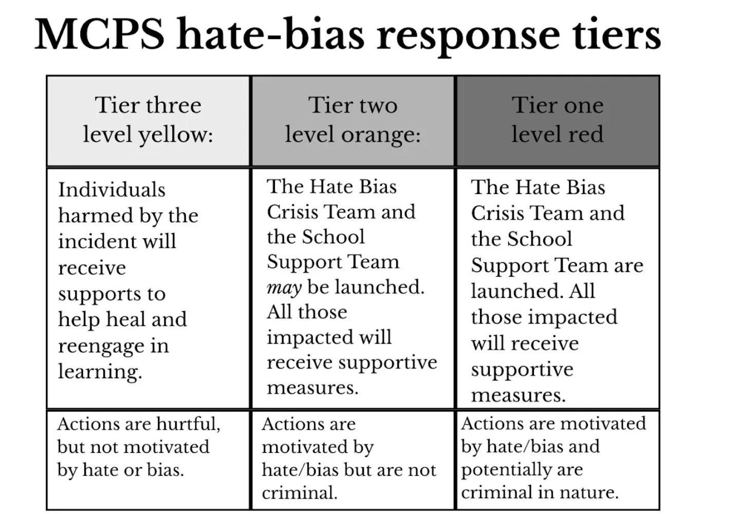 I want to state unequivocally that discrimination and hate and bias in any form will not be tolerated at Montgomery Blair.