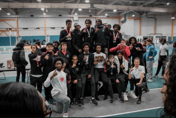 Boulé, Principal Damon Monteleone, and Coach Terry Johnson await their arrival. Boulé quiets the team, then shares the news: the boys’ indoor track county, regional, and state championships are to