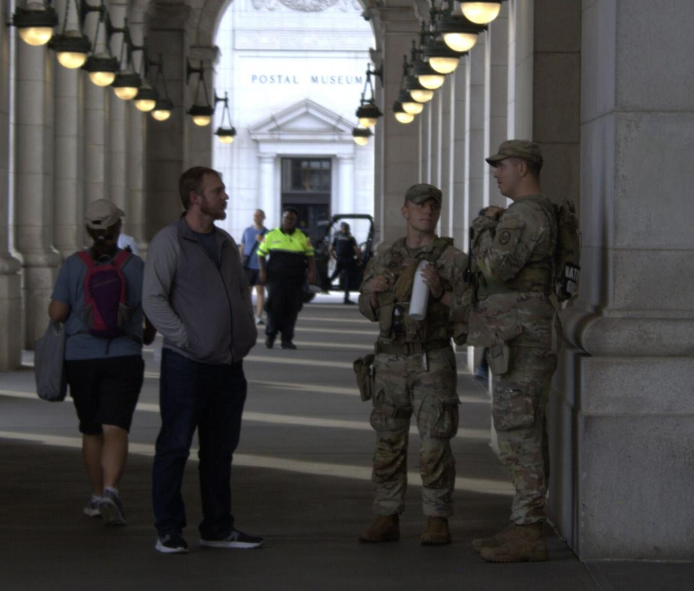 Joint Task Force-DC (JTF-DC) is the official designation of the combined National Guard, D.C. Metropolitan Police, and federal law enforcement units operating in the district. Since the deployment, JTF-DC has reportedly engaged in tasks ranging from community patrolling and protecting government facilities to traffic control. Some are even assigned to picking up trash and mowing the grass. “While not directly related to patrolling, we believe a clean and