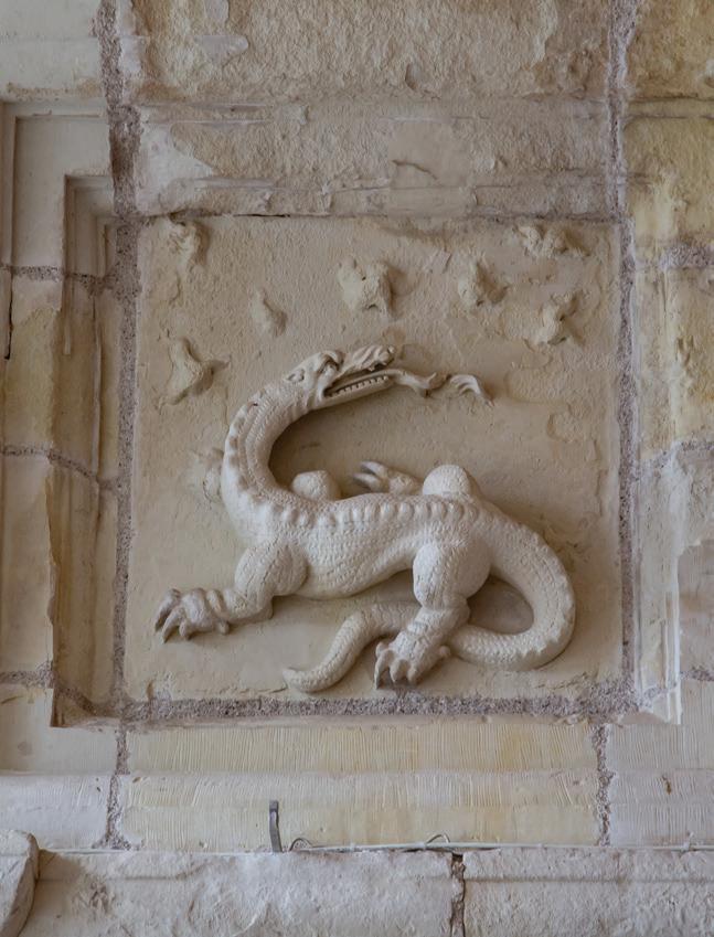 BOTTOM LEFT: HIGH RELIEF SCULPTURE OF A SALAMANDER, THE KING’S EMBLEM.
