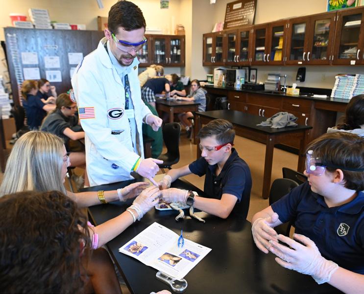 Similarly, Mr. Buckler often gives students a packet with blank notecards, freeing them up to ask and answer questions and make connections as he shares information with students. He also illustrates concepts through models and demonstrations, such as disecting a pig and observing chemical reactions.