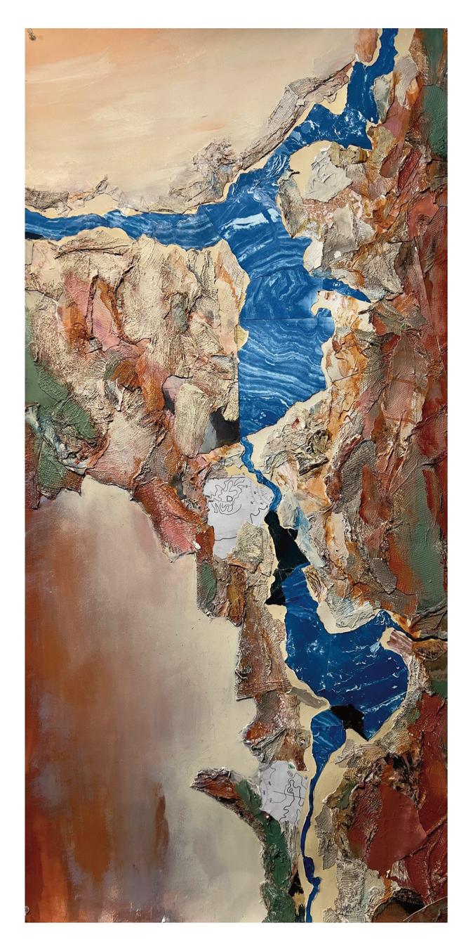 The Tale of Lost Waters acrylic, cyanotype and mixed media on paper, 51 x 24 inch, $2,400.