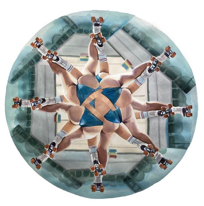 Spin and Roll watercolor, 36 x 36 inch, $2,000.