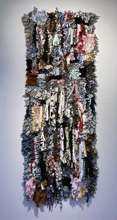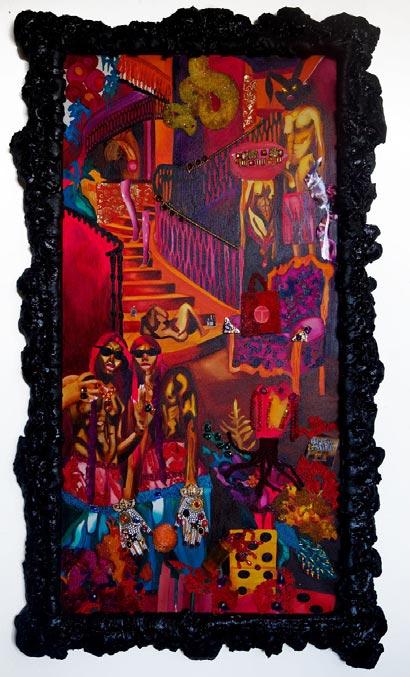 beads, fabric, oil paint, rhinestone on canvas, 48 x 24 inch, $12,000.