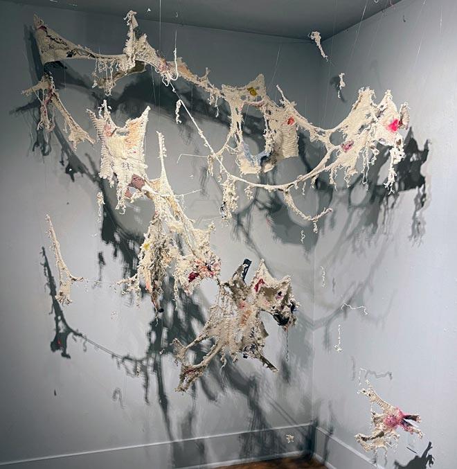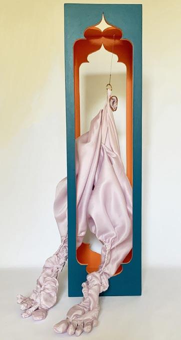 silk, fishhooks, wood, lacuer, 48 x 17 x 19 inch, $1,850.