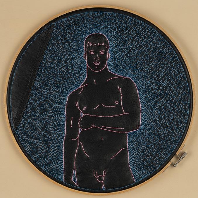 Queer art can create sites of recognition. Figurative work has been fundamental within art movements that lie outside of heteronormativity and gender binaries, whether those expressions have been overt or deeply coded. In recent decades, scores of LGBTQIA+ artists have flocked to figurative painting, reclaiming their place within traditions that have excluded them. Through radically different painting styles, artists including Daniel Ashley and Joan Cox render the tender exchanges of couples, while Sinjela Mwinga depicts friends and chosen family in moments of joyful connection. But we can also find recognizable touchstones of queer culture in other kids of representational, or even abstract art—such as Ron Geibel's sculptures evoking tiled bathrooms and glory holes, or Ryan van den Hout's detailed drawing of a disco ball, an unequivocally queer image.