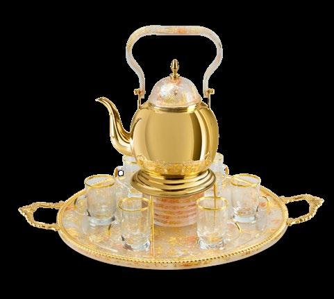 Coffee set composed of round tray with handles ø 440 mm, smooth coffee pot C/719 A, n. 2 Juice glasses with covers , n. 2 Coffee cups, n. 2 Glass bowls ø 140 with covers, n. 1 Glass bowl for Nuts ø 90 , n. 1 tissue box C/739 MINI, n. 1 Toothpick holder