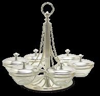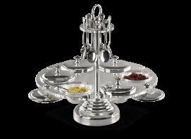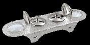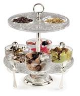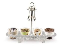 Silver leaf plexi stand for ice cream toppings/fillings nr. 4 glass bowls with silver plated lids