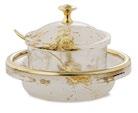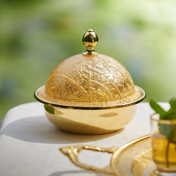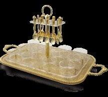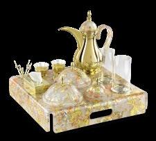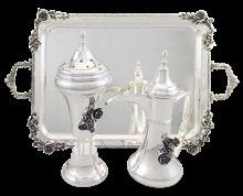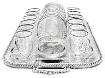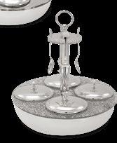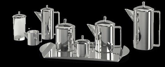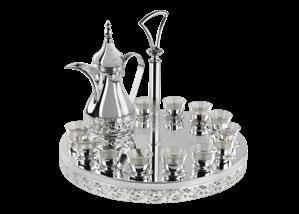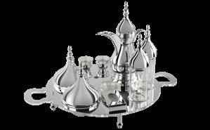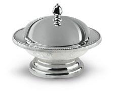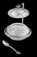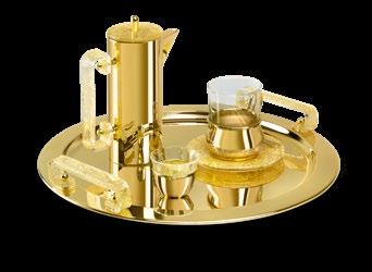 Coffee set composed of round tray with handles ø 440 mm, smooth coffee pot C/719 A, n. 2 Juice glasses with covers , n. 2 Coffee cups, n. 2 Glass bowls ø 140 with covers, n. 1 Glass bowl for Nuts ø 90 , n. 1 tissue box C/739 MINI, n. 1 Toothpick holder
