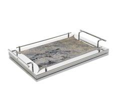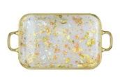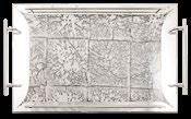 Rectangular tray, border with stones, white pearly plexi handles 380x510 mm