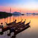 The sun sets upon the UNESCO-listed Bay of Descending Dragons; Ha Long Bay, Vietnam