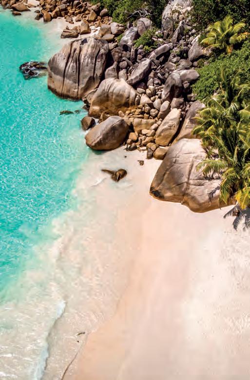 PRASLIN, SEYCHELLEN Praslin, die zweitgrösste Insel der Seychellen und wohl auch die attraktivste, bietet atemberaubende Strände, azurblaues Meer, dichte Dschungel und eine entspannte Atmosphäre. Was Praslin einzigartig macht, ist das Vallée de Mai, ein geschützter Wald mit seltener Fauna und der berühmten Coco de Mer-Palme, ein Baum, der den grössten Samen und die grösste Palmenblüte der Welt hervorbringt. Der Hain ist eine der beiden UNESCO-Weltkulturerbestätten der Seychellen und wurde treffend als Garten Eden bezeichnet.