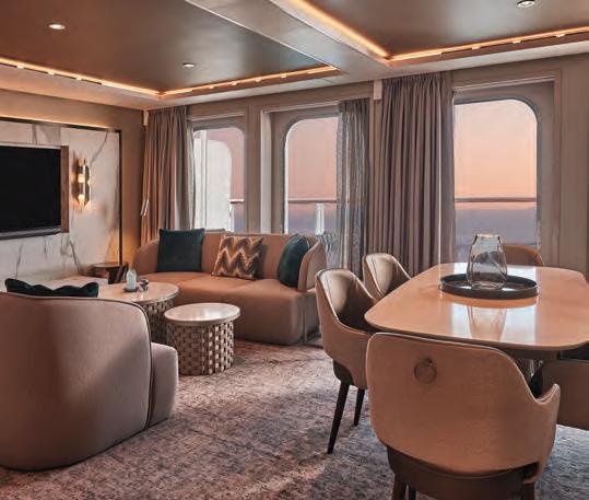 Geniessen Sie eines der höchsten Platz-zu-Gast-Verhältnisse auf See und die Annehmlichkeiten fein ausgestatteter Suiten mit Meerblick und verwöhnenden Annehmlichkeiten.