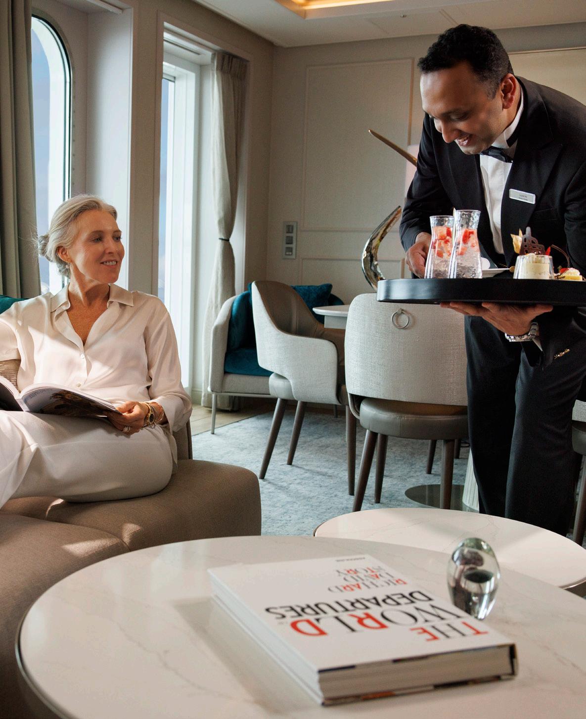 Butler service for every suite ensures your voyage is sheer perfection – from unpacking luggage and serving breakfast to handling laundry requests and shining shoes before dinner.