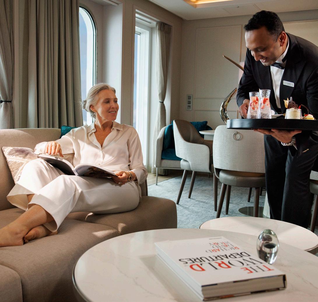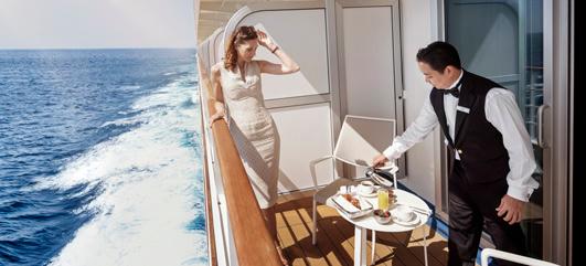 • Beverages in-suite and throughout the ship, including champagne and selected wines, premium spirits, soft drinks, and more