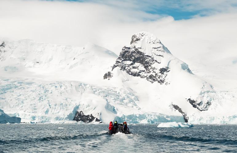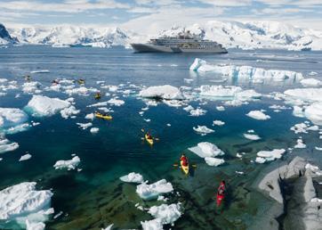 • Witness the extraordinary beauty of ice in all its forms, from spectacular glaciers and monumental icebergs to pack ice, bergy bits and ice floes.
