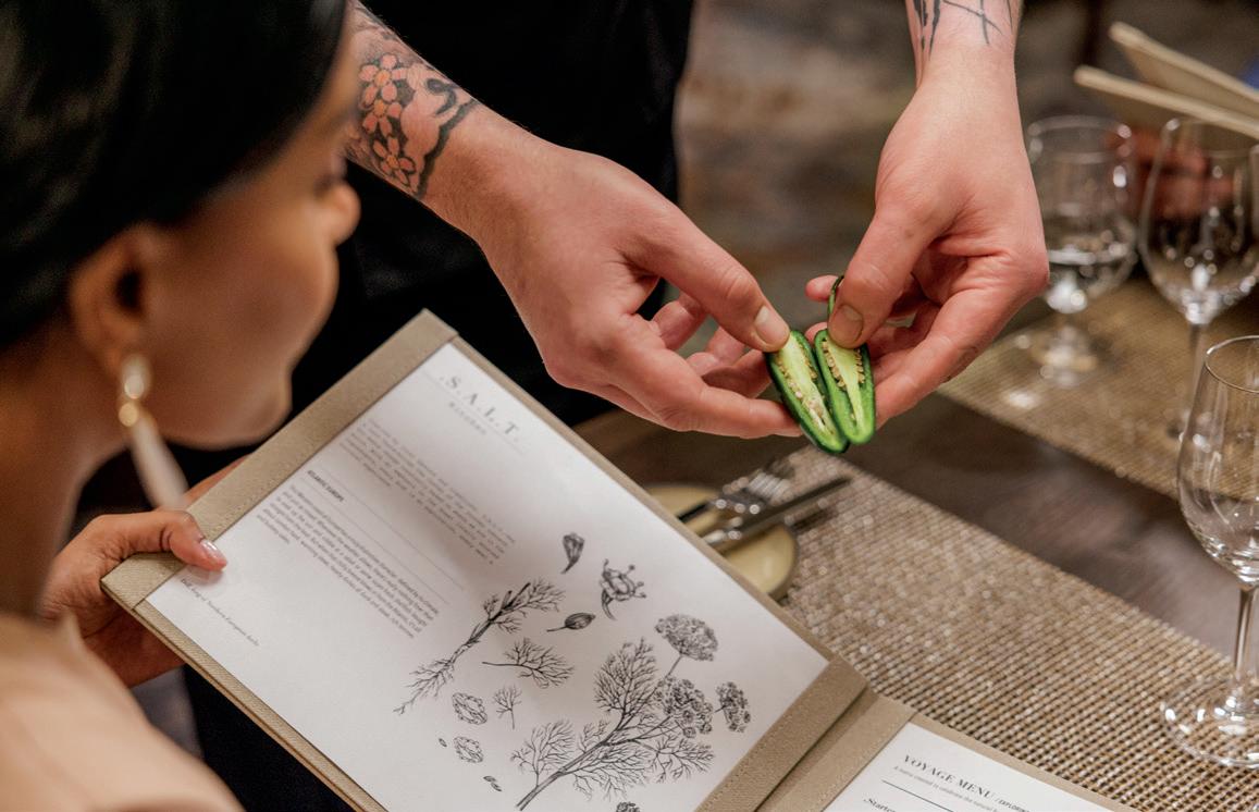 S.A.L.T. Kitchen – Geniessen Sie täglich wechselnde, vom Reiseziel inspirierte Spezialitäten mit regionalen Zutaten vom Terrain-Menü oder probieren das Voyage-Menü, das die besten Rezepte der Reise umfasst.
