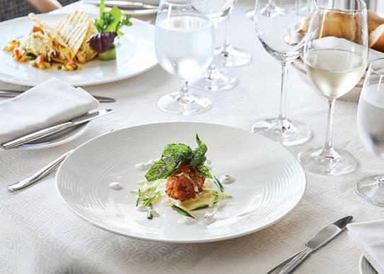 Clockwise from top left: haute cuisine at La Dame; immersive Master Suite views; Arts Café; glass-wrapped Pool Deck