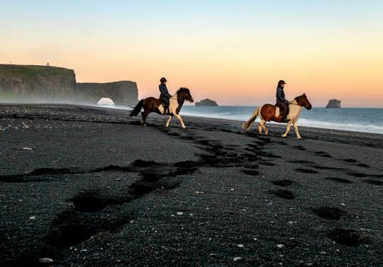 Clockwise from top left: Dyrholaey, Iceland, photo by Steve McCurry for Silversea; a Zodiac spin in the Arctic; talks in the Explorer Lounge