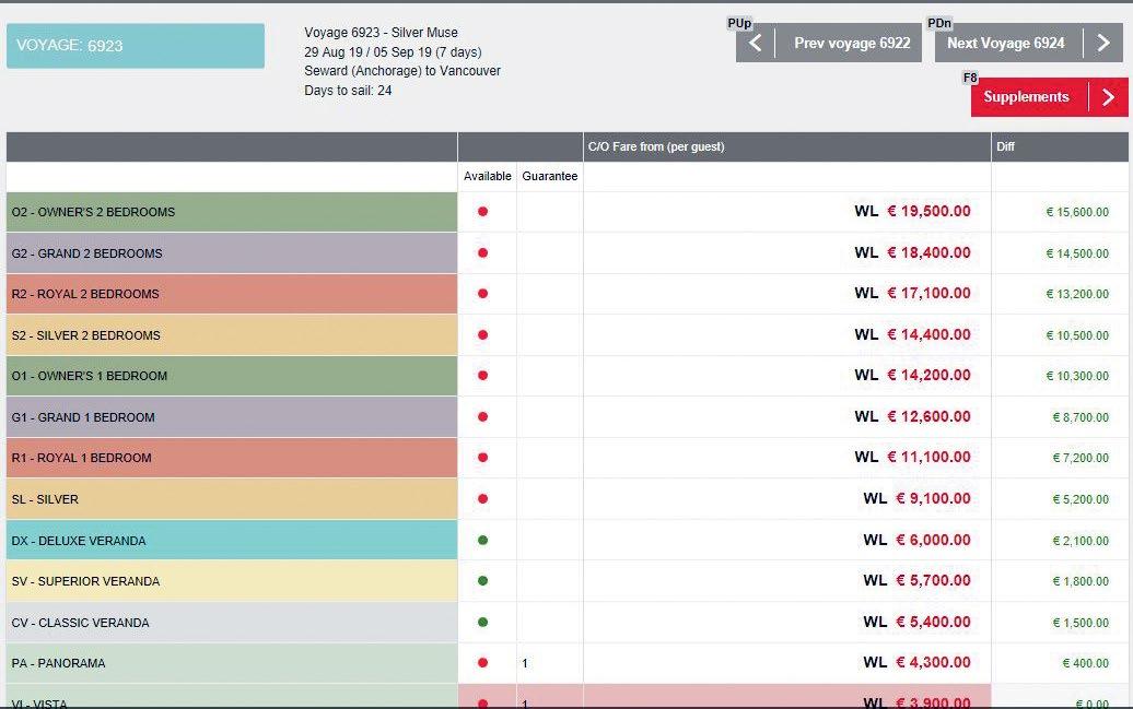 Cliccare sull’itinerario per visualizzare il programma dettagliato con porto di arrivo e orario di partenza Pagine aggiuntive Legenda Disponibilità