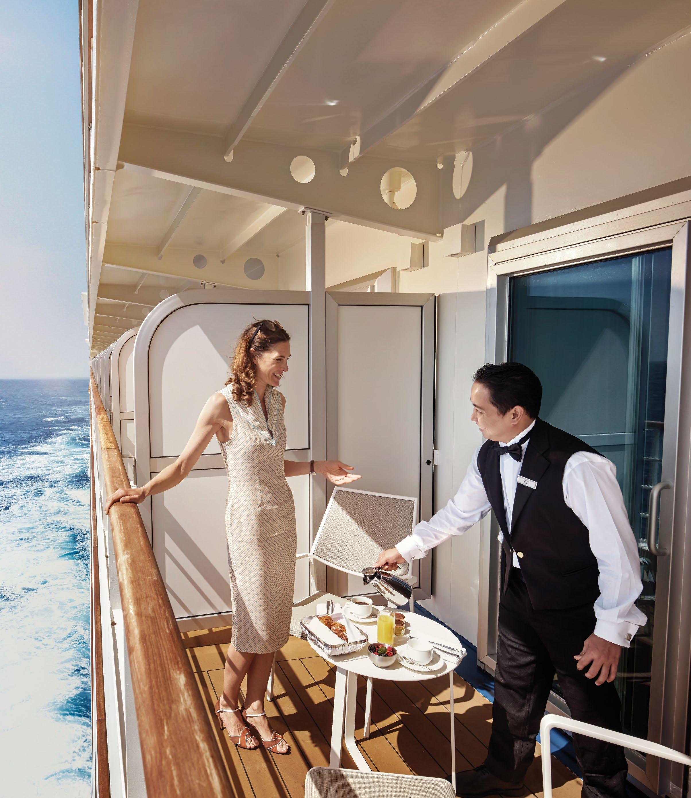 Il livello del servizio a bordo delle nostre navi non ha eguali, grazie al numero dei membri dell’equipaggio a disposizione pressoché pari al numero degli ospiti e all’esclusivo servizio del maggiordomo assegnato ad ogni suite. Il personale di Silversea, sempre attento, discreto e competente, è la chiave di volta nel grado di soddisfazione dei vostri ospiti.