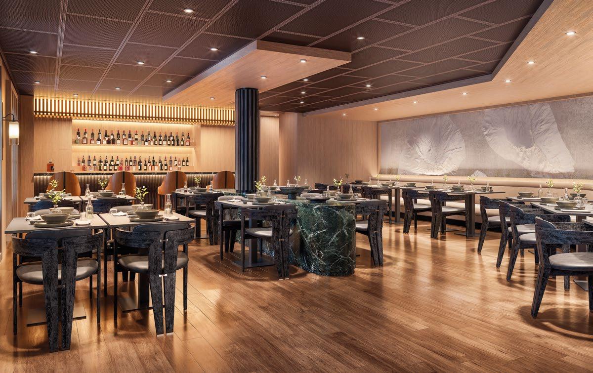 A destra, dall'alto in basso: ristorante Kaiseki e ristorante La Dame, entrambi situati sul ponte 4