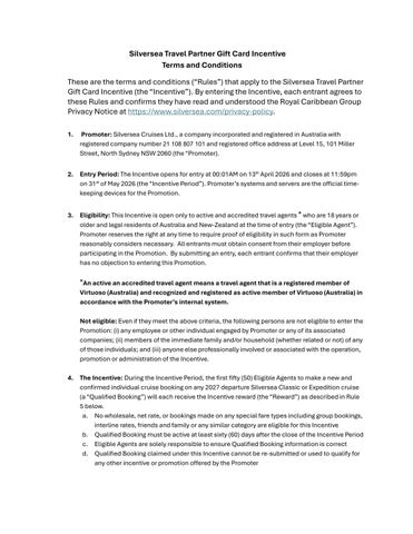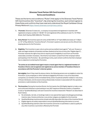 AUNZ Silversea Booking Incentive -Travellers Choice_13 Apr - 10 May_T&Cs
