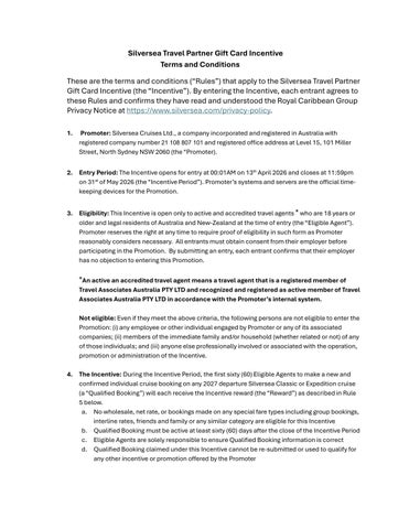 AUNZ Silversea Booking Incentive - Travel Associates_13 Apr - 31 May_T&Cs