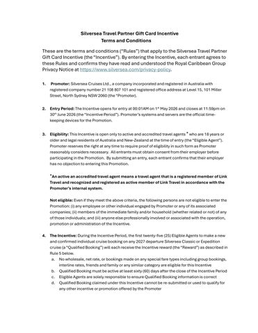 AUNZ - Silversea Booking Incentive - Link_1 May - 30 June_T&Cs