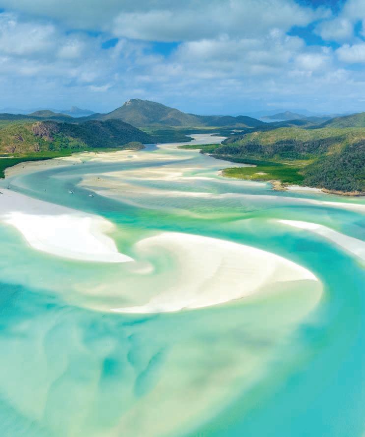 This spirited hub of sun and sea blends laidback charm with reef-fringed beauty. Stroll the café-lined esplanade or lounge at the palmshaded lagoon before setting off to explore the Whitsunday Islands. Look for humpbacks in Pioneer Bay, follow rainforest trails in Conway National Park, or rise above it all on a seaplane flight to Whitehaven Beach’s dazzling shores.