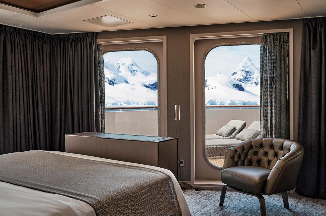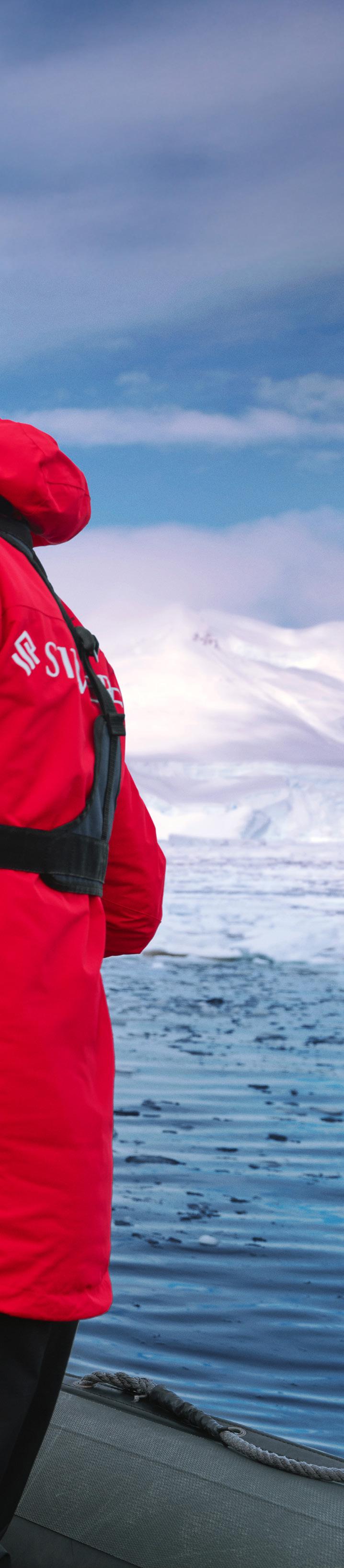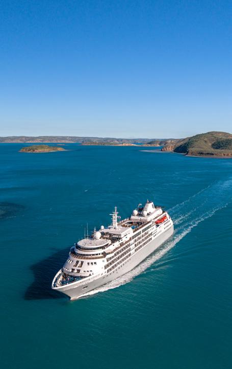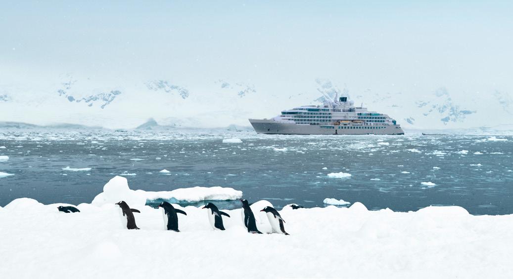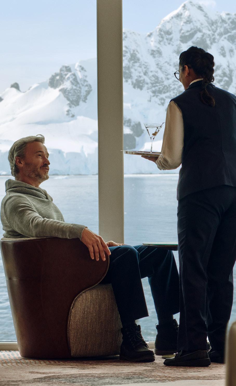 Inside your private sanctuary, space and serenity meet the spirit of exploration. Most suites open onto teak verandas and all feature floor-toceiling windows, inviting seamless connection to the outside world. Every detail is carefully considered for your comfort and convenience, from plush bedding, spa-like bathrooms, and invaluable storage space to unlimited Wi-Fi and in-room entertainment. Here, indulgence sets the foundation for unforgettable adventures.