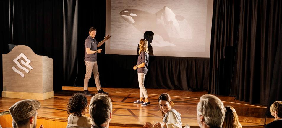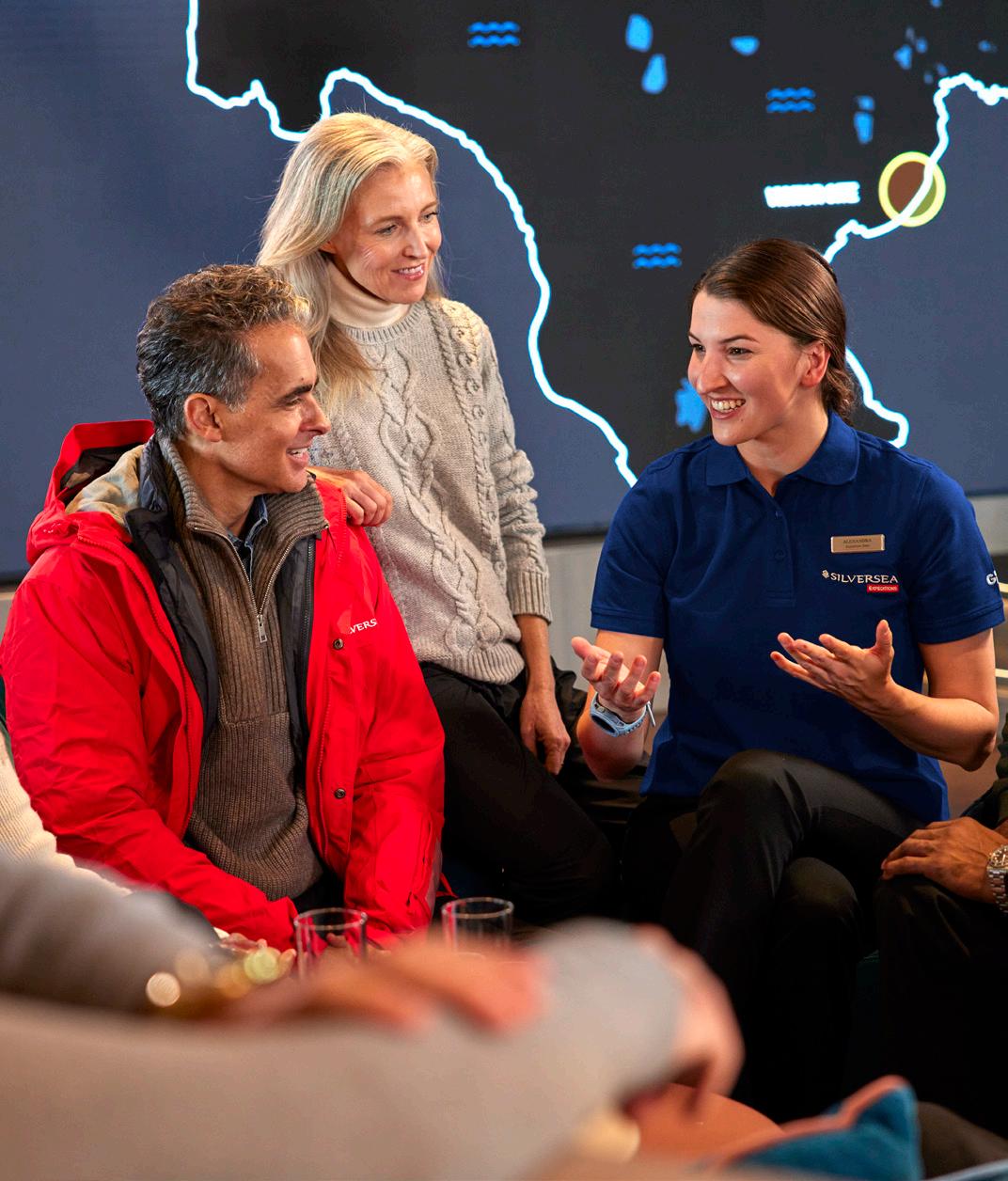 Elevated enrichment programs and destinationinspired details heighten the thrill of exploration in between activities ashore. Gather in the Explorer Lounge for pre-dinner cocktails and fascinating lectures led by subject-matter experts who tailor each talk to your unique itinerary and interests. In the Show Lounge, engaging discussions and a variety of special events invite you to connect with Expedition Experts, reflect on your discoveries, and gain deeper insight into your destinations.