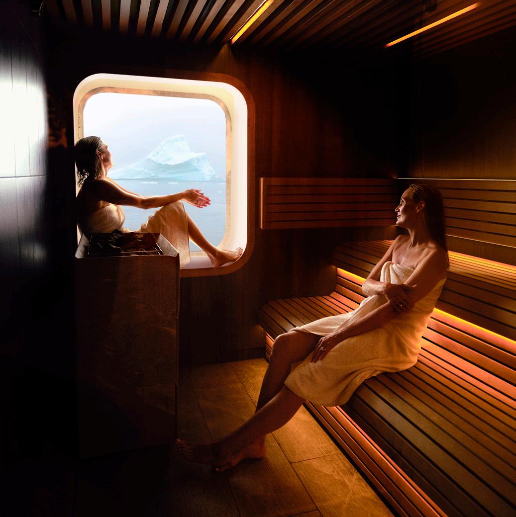 Shape your own journey to well-being with flexible offerings that include private fitness instruction, personalized beauty consultations, and revitalizing spa treatments. After exhilarating days spent climbing mountains, forging paths through polar deserts, or kayaking along majestic fjords, unwind in steam rooms and saunas or indulge in sea-inspired rituals designed to soothe the senses and restore the mind. Treat yourself to a massage or facial, complemented by hair and nail services that bring a sense of elegance after rugged exploration. Join a class at our fully equipped fitness center or go for a jog on breezy open-air tracks. From balance and recovery to relaxation and rejuvenation, you’ll find that self-care is seamlessly woven into every Expedition.