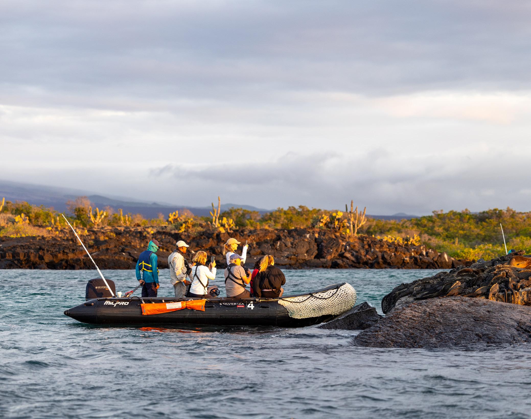 • Explore volcanic formations by Zodiac, spotting sharks and rays around San Cristóbal Island.