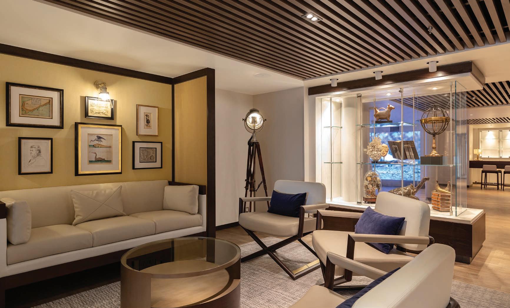An innovative hull design and advanced propulsion system meet or exceed the highest standards of energy efficiency, and exterior lighting can be dimmed so the ecosystem remains undisturbed. All suites feature a freshwater purification system, which significantly reduces plastic usage.
