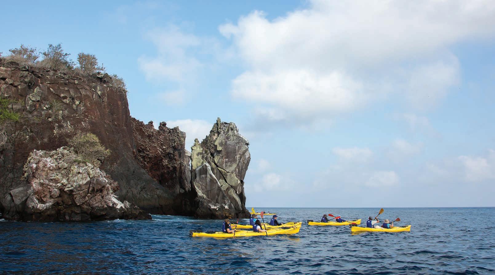 With our naturalists on hand to point out interesting sights, you can take to the water to form an even closer bond with Mother Nature. Kayak around Darwin’s Bay and admire Genovesa Island’s craggy landscape. Keep your eyes on the water for signs of wildlife; they’re sure to abound. Galápagos penguins, marine turtles and playful sea lions inhabit the islands’ waters, as well as an abundance of tropical fish species.