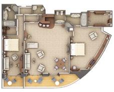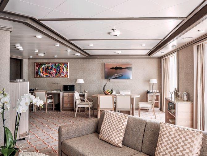 Majestic and sophisticated, the Grand Suite and Royal Suite live up to their names, with living spaces that are ideal for entertaining friends or unwinding as guests wish. Your clients can enjoy a cocktail on their private terrace, followed by a sumptuous dine-in elegant meal. With beautiful views, abundant comforts and bow locations*, these suites represent twin pinnacles of good living.