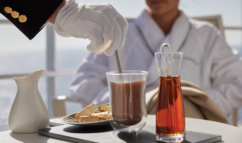 With a ratio of nearly one staff member available to every guest and around-the-clock, dedicated butler service in all suites, the level of personal service on our ships is unparalleled. Our devoted, discreet and experienced on board team takes pride in playing a key role in your clients' complete satisfaction.