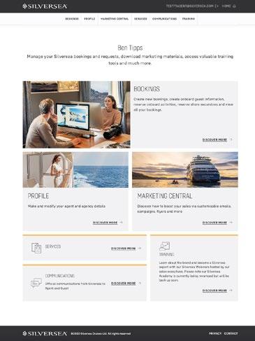 anchor off shore. And for those who yearn to explore the new and unknown, our purpose-built Silversea Expedition® ships can transport your clients to the furthermost boundaries of the planet. Travel is the elixir of life at Silversea and every voyage is a journey of sublime discovery.