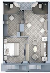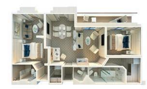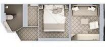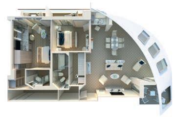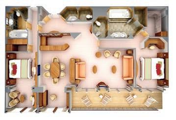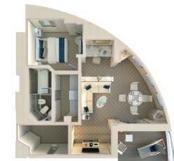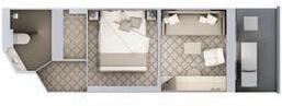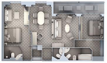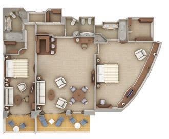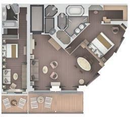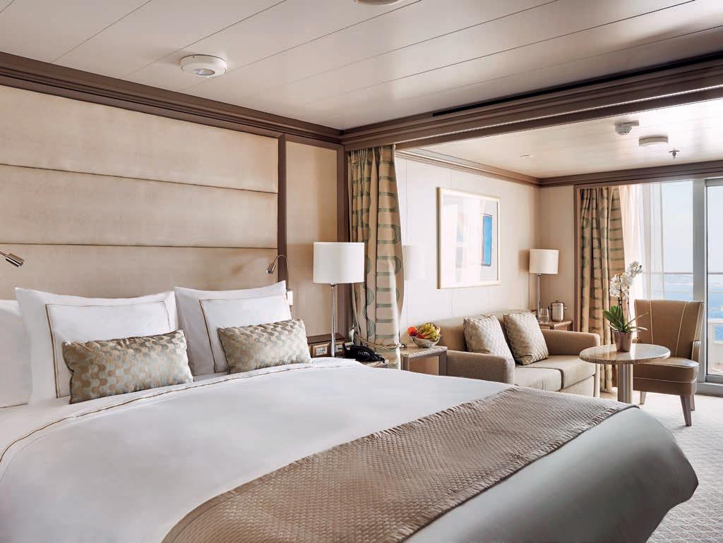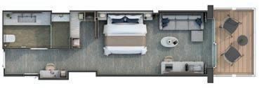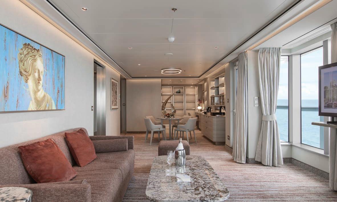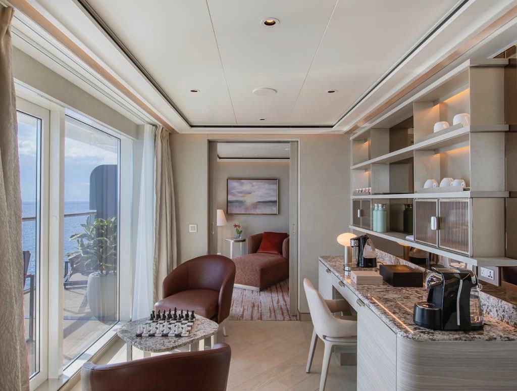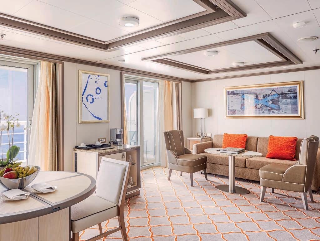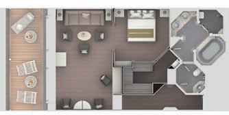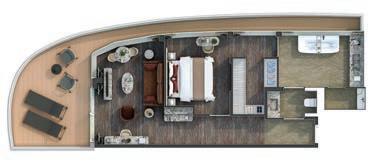 Majestic and sophisticated, the Grand Suite and Royal Suite live up to their names, with living spaces that are ideal for entertaining friends or unwinding as guests wish. Your clients can enjoy a cocktail on their private terrace, followed by a sumptuous dine-in elegant meal. With beautiful views, abundant comforts and bow locations*, these suites represent twin pinnacles of good living.