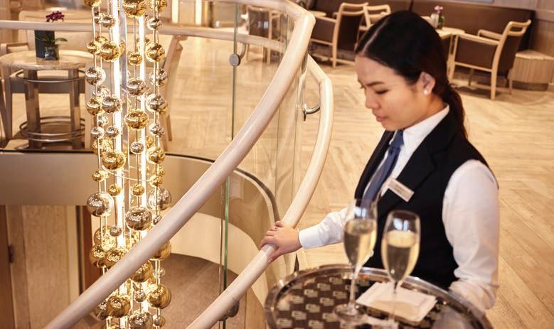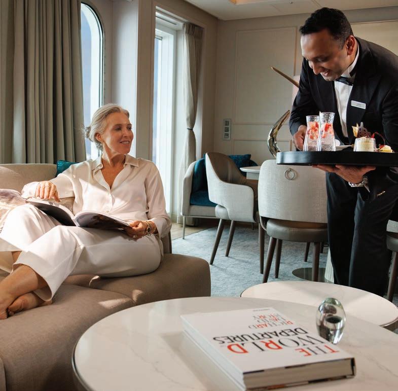With a ratio of nearly one staff member available to every guest and around-the-clock, dedicated butler service in all suites, the level of personal service on our ships is unparalleled. Our devoted, discreet and experienced on board team takes pride in playing a key role in your clients' complete satisfaction.