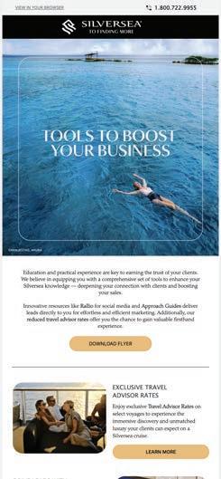 Marketing Central is your hub for all Silversea marketing tools, materials, and assets. Explore resources that can be tailored to your specific needs to drive your sales success — from single voyages and multi-voyage packages to group travel, and more.