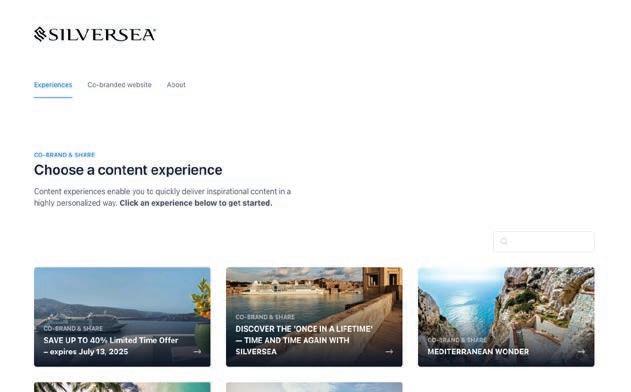 Cutting-edge technology tool that provides you with a co-branded private label Silversea website.