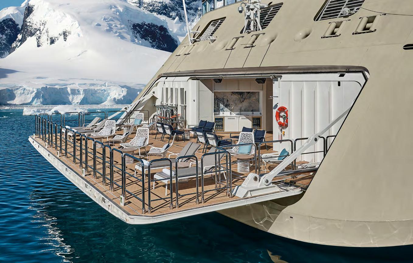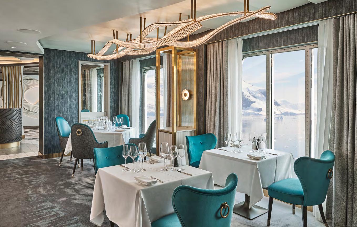 Silversea has been exploring the world’s most distant and isolated regions longer than any other luxury line, with unmatched expertise offering exceptional levels of personalised engagement. Every expedition is hosted by a passionate team of explorers and experts with itinerary-specific knowledge – specialists in marine biology, glaciology, ornithology, history, photography, and more – ensuring your safe access and enriching discovery in uncharted destinations. In addition to an industry-leading Zodiac-to-guest ratio, the ship carries state-ofthe-art amenities including a remote gimbal camera system to capture high-quality images from 5 km (3 mi), bringing amazing scenery and wildlife into closer view.