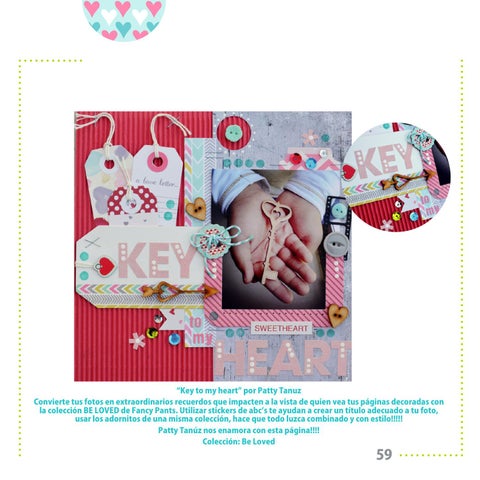 “Key to my heart” por Patty Tanuz Convierte tus fotos en extraordinarios recuerdos que impacten a la vista de quien vea tus páginas decoradas con la colección BE LOVED de Fancy Pants. Utilizar stickers de abc’s te ayudan a crear un título adecuado a tu foto, usar los adornitos de una misma colección, hace que todo luzca combinado y con estilo!!!!! Patty Tanúz nos enamora con esta página!!!! Colección: Be Loved