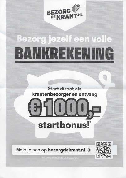 In de komende dagen komen we weer bij u langs om de envelop voor de vrijwillige bijdrage op te halen.
