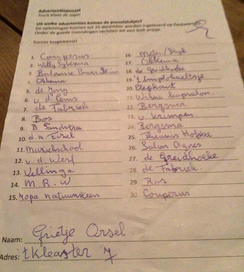 De advertentie puzzel was dit keer moeilijk of ........ Van 25 oplossingen van vorig jaar kwamen we dit jaar uit op 1 ingezonden oplossing.