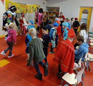 Yn groep 1/2 en groep 3/4 kaam de Sint in skoft yn 'e klasse. De bern diene spultsjes mei de piten, songen ferskes foar Sinteklaas, lieten sjen wat se op skoalle leare en hiene fansels in soad fragen foar Sinteklaas. Op dizze foto’s is Sinteklaas yn groep 3/4.