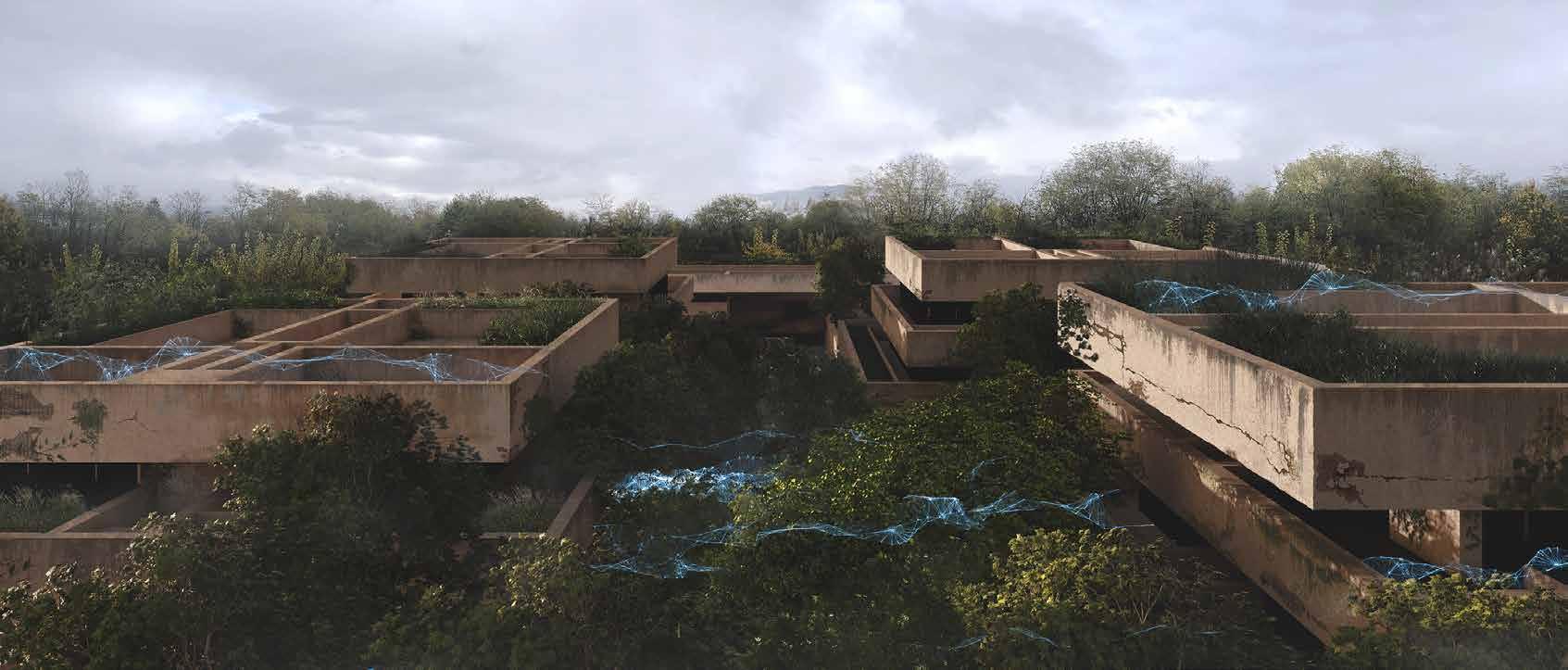 BETWEEN THE RIVER AND THE PROVINCIAL ROAD, ON THE EDGE OF VERONA, THERE IS A GAP IN THE HYBRID AND MULTIPLE LANDSCAPE. PARONA EXISTS MOSTLY IN MOTION, THE COORDINATES BLUR. DECOLONISING THE CITY, SCHIZOPHRENIC, LIQUID AND AT THE SAME TIME INDECISIVE AND IMMOBILE, IN ORDER TO ESCAPE TO OTHER PLACES, ACCORDING TO THE PARADIGMS OF AUTONOMY, REPRODUCIBILITY AND CO-HABITATION OF THE HUMAN SPECIES WITH OTHERS, THROUGH THE DEFINITION OF A SETTLEMENT PROTOTYPE, AN ALTERNATIVE TO THE HYPER-CROWDING AND UNCONTROLLED EXPANSION OF THE CONTEMPORARY CITY, TO REACT TO ITS COLLAPSE. INVESTIGATING THE LAWS OF NATURE, NO LONGER A SYNTHETIC EMULATION OF AN EARTHLY PARADISE, IN ITS CONFIGURATIVE CAPACITIES AND ITS ABSENCE OF PARAMETERS, TO RETHINK A PLACE WHERE THE BALANCE BETWEEN NATURE AND ARTIFICE BECOMES A MODEL OF EVERYDAY LIFE, FOR THE CONSTITUTION OF AN ALTERED AND AMPLIFIED LANDSCAPE OF LIVING: A SUPERLANDSCAPE, THROUGH WHICH MAN PREPARES TO OVERCOME THE ANTHROPOCENE. AFTERWARDS IS A DYNAMIC TENSION TOWARDS THE FUTURE.