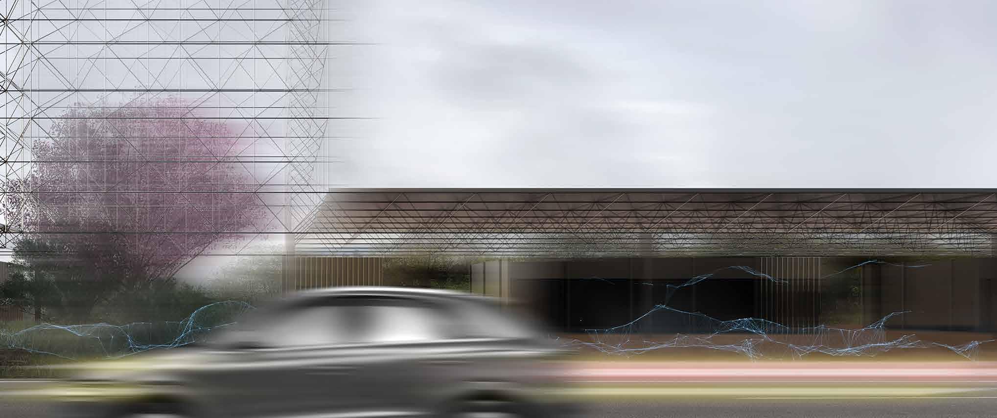 STARTING FROM ITS PHILOSOPHICAL MEANING, THE VIRTUAL IS A POTENTIAL REALITY, AS OPPOSED TO ACTUAL REALITY; A PROJECTION OF THE PHYSICAL WORLD, AN “ELECTRIC SPACE” THAT IMPLIES NOT ONLY THE TRANSMIGRATION OF PHYSICALITY INTO THE DIGITAL, BUT ALSO THE DEFINITION OF RULES THAT DELINEATE SPACE AND TIME IN CYBERSPACE, INTANGIBLE BUT POSSIBLE. REINTERPRETING THE CONCEPT OF THE EPHEMERAL, THE PROJECT OVERCOMES ITS MEANING OF IMPERMANENT, TRANSITORY, AND TRANSMIGRATES INTO THE DIGITAL CONTINUUM, THE PAVILION’S CURTAINS ARE HOLOGRAMS, PIXELS, MAKING THE MATERIALITY OF THE PAVILION COMPLETELY INTANGIBLE AND COMPLETELY SUPERFLUOUS, TRANSFORMING THE ARCHITECTURE INTO PURE LIGHT AND PURE SHADOW. IN FACT, THE PAVILION IS ABSORBED BY THE WORK IT CONTAINS AND BECOMES PART OF IT. AS IN THE EXHIBITION OF A SCULPTURE, IT DOES NOT DISREGARD ITS SHRINE AND STANDS IN A COMPLETELY SYMBIOTIC RELATIONSHIP WITH IT. BUT ITS ROLE GOES FURTHER: THE OVERCOMING OF ITS LIMIT IS THE THRESHOLD TO A NEW WORLD, THAT OF EXPERIMENTATION.